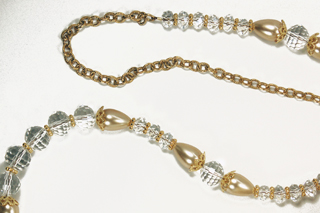 clear faceted glass beads and pale pearlized black beads with accents of gold. The purse has a magnetic snap closure.