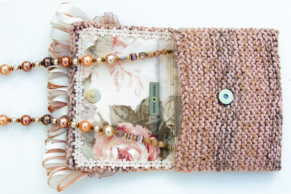 Although this bag has been sold, I can create one for you that will be in keeping with it's original design. However, no two designs are identical and every bag is original, and unique, and therefore won't be duplicated exactly. Please email me and we can talk about what you'd like to have that's similar to this design.Rose Taupe measures 7"W X 6"H. In beautiful shades of rose, peach and taupe, this purse brings a softness to any ensemble. It is created with a multi-colored yarn in pinks, camels and taupe. The embellishment on the top flap consists of a bottom row of a delicately feminine peach and ivory ruffle. The ruffle is topped with sheer rose-colored organza flowers, adding that extra touch of femininity to an already luscious purse.The inside is lined with two fabrics that not only complement each other but that work perfectly with the outside of the purse. The fabrics are a muted print and plaid in watered down colors of peach, ivory and taupe. |